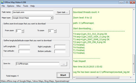 Description: Offline Map Maker is a tool that help you to get offline tile images from Google Maps, Yahoo maps, Bing maps. All downloaded offline images are saved on your disk. You can view downloaded offline map by Offline Map Viewer. And you can zoom out or zoom in the offline map, or output the offline map as a .BMP file with a world file xxx.bpw, and can output a xxx.map file for OziExplorer. If you want to make a offline map of your city by yourself, it is very useful for you.